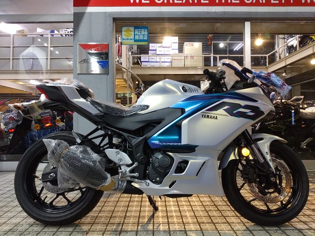 待つこと四ヶ月ようやく入荷した新型YZF-R3、HP掲載前、入荷日に成約になっている車両ですが、今後ブルーとダークグレーの入荷予定がございます。ご興味がございましたらお気軽にお問い合わせください。ご予約お待ちしております。