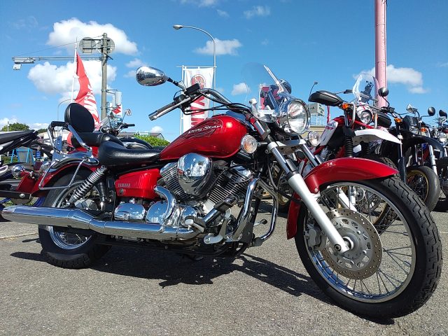 型式VG05J型の当店新車販売のワンオーナーYAMAHA ドラッグスター250が入荷しました。メーカー純正オプションパーツがいくつか装着されています。まず、フロントスクリーン、リアキャリヤ、タンデムバックレウト、エンジンガード、グリップウオーマー、ETC車載器など、タイヤ、チューブ前後、バッテリー、スパークプラグは新品に交換しております。走行距離は驚くほど少ない1,067kmです。プレミアム感を感じていただけるドラッグスター250は如何でしょうか。お支払いは、自由返済型の特別低金利クレジットがご利用いただけます。