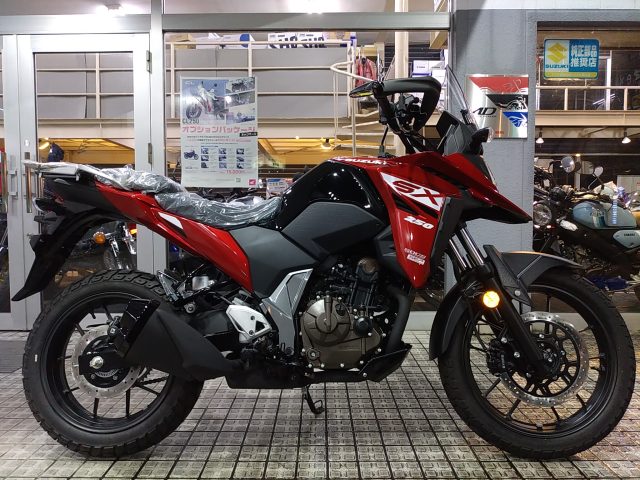 2025年モデルNewカラー、ソノマレッドメタリックのSUSUKI Vストローム250SXが入荷しました。2025年の入荷が最後になるSXですが、どうやらソノマレッドカラーはこの車両が最終入荷になるもようです。軽く、小さく、シンプルな油冷SEPエンジンを搭載したSXを是非、ご体感ください。