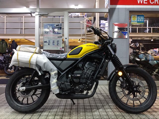 HONDA Rebel250 がようやく入荷してきました。E-Clutch が搭載されていない従来型のRebel 250 になります。「E-Clutchは必要ないよ、金額が安いほうがいい」とお考えの方にお勧めです。当店のサービスをちょっとご紹介いたします。車両の納車時はガソリン満タンにして納車しています。これは、車両に慣れていない状態でガソリンスタンドに立ち寄るのは意外と不安で少しの勇気が必要な事だと思うからです。それと、初回点検時のオイル、フィルターを無料交換、初回点検は初期の馴染みを調整し安全にバイクに乗るための最初の点検です。そして、2年間のメーカー保証を継承させるためでも必要な点検です。なので、必ず実施してほしいとの思いから無償で交換しております。その他、ライセンスサポートキャンペーンなども開催しておりますので、お気軽にお問い合わせください。あっ、もう一つ忘れていました、店長の笑顔です!(笑)
