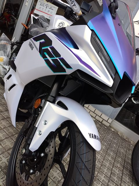待つこと四ヶ月ようやく入荷した新型YZF-R3、HP掲載前、入荷日に成約になっている車両ですが、今後、同カラーの入荷予定がございます。ご興味がございましたらお気軽にお問い合わせください。ご予約お待ちしております。
